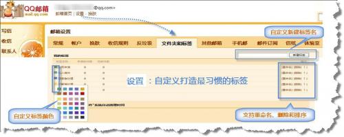 比起傳統(tǒng)的文件夾方式,在QQ郵箱里使用標(biāo)簽管理郵件的最大優(yōu)點(diǎn)是可以給郵件加上一個(gè)自定義的標(biāo)簽,從顏色和標(biāo)簽文字智能分類我們的郵件處理順序。